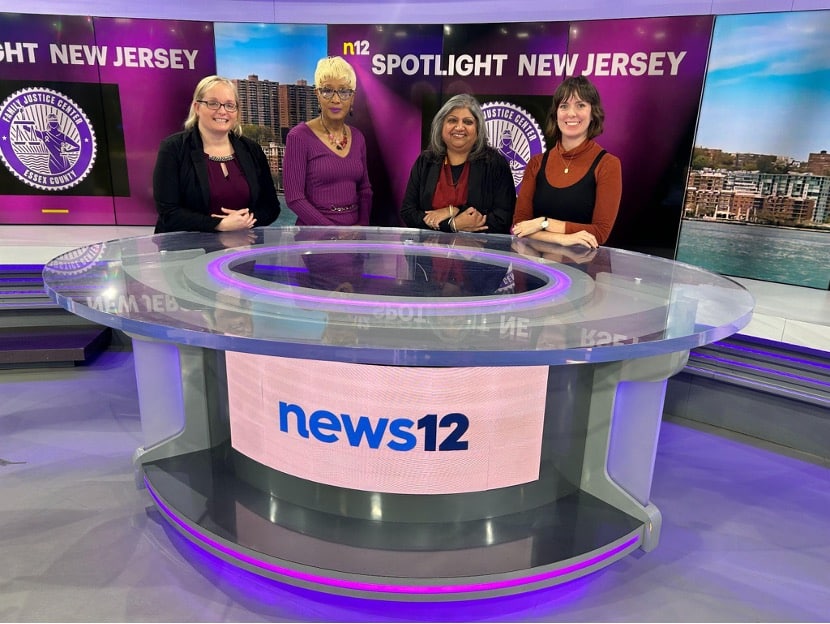 Beth with staff and board of Essex County Family Justice Center during the taping of News 12 NJ Spotlight with Della Crews